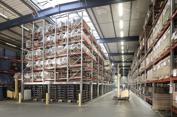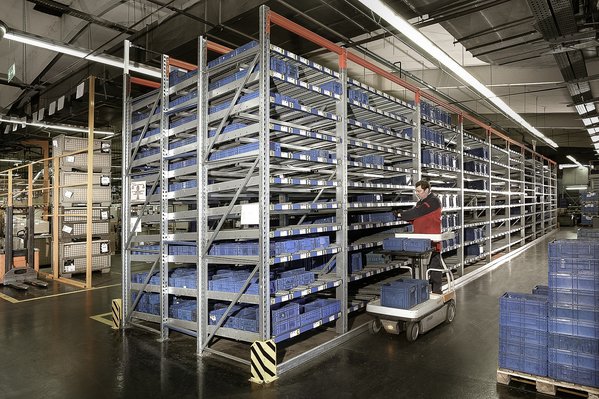 Live storage are rack systems where goods are placed onto the on-load face and are carried down by the force of gravity. At the off-load face the pallets can be removed. The principle of “first in - first out” is achieved without particular technical complexity of controlling. Live storage racks are implementable for all eligible goods. If the goods to be stored cannot be conveyed, corresponding aids such as boxes, pallets or other unit loads must be used. The operation can be manual or fully automatic also using appropriate operating units.
